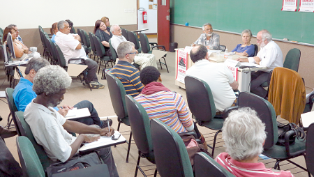 Realizado em 27/11, no Auditório Antonio Giglioli do Instituto de Matemática e Estatística (IME), o debate “Democracia na Universidade” contou com a presença de docentes, funcionários e estudantes. Os expositores convidados, professores Eunice Ribeiro Durham (FFLCH-USP) e José Luís Sanfelice (Faculdade de Educação da Unicamp), falaram sobre os desafios de hoje e do passado para que as universidades públicas sejam verdadeiras vanguardas no que diz respeito à defesa de democracia, tanto no que se refere ao acesso ao ensino superior, quanto ao modus operandi acadêmico e politico dessas instituições. Mediando a mesa, o professor César Minto, vice-presidente da Adusp, apresentou os debatedores.