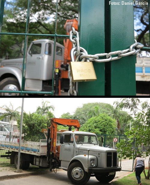 O Sintusp acaba de emitir nota em que denuncia o trancamento, nesta data, do único portão existente na grade construída pela Reitoria em torno da sede do sindicato e no perímetro da "Prainha", praça situada entre o prédio da Reitoria e o prédio central da Escola de Comunicações e Artes (ECA). A Prefeitura do Campus estacionou um caminhão-guindaste em frente ao portão, que se encontra trancado.